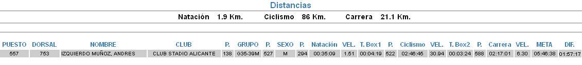 Tiempo final: 5:46:38, puesto final 557 de 649 finalizados (entre no presentados y abandonos hubo más de 100). Ya puedo decirlo oficialmente de cara al postureo: soy finisher de un medio Ironman.